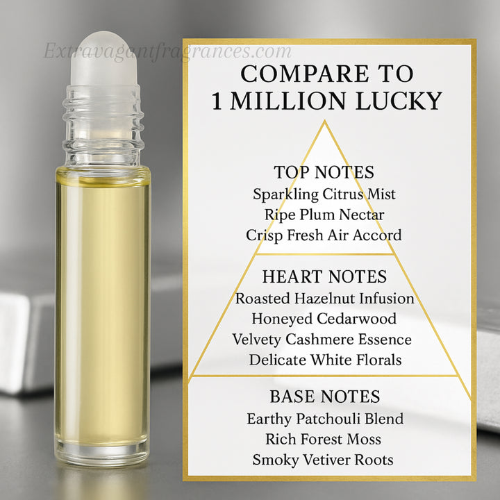 Compare to 1 Million Lucky The fragrance body oil offered by Extravagant Fragrances is inspired by the scent profile of the designer fragrance referenced. We are not affiliated with...