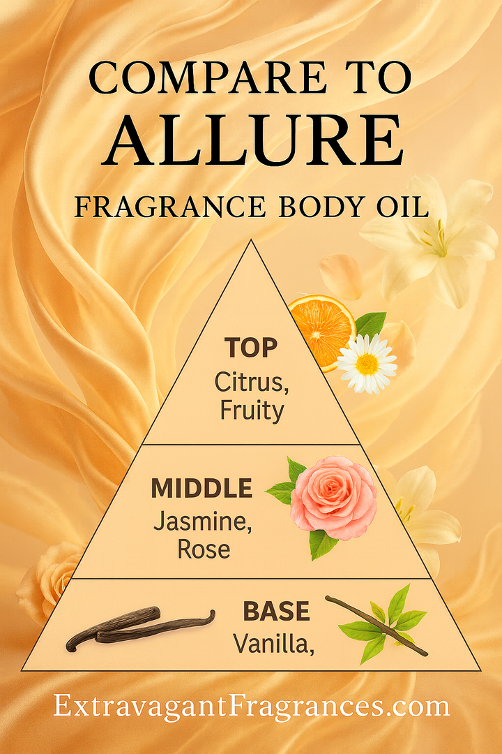 Compare to: Allure (W) The fragrance body oil offered by Extravagant Fragrances is inspired by the scent profile of the designer fragrance referenced. We are not affiliated with the...