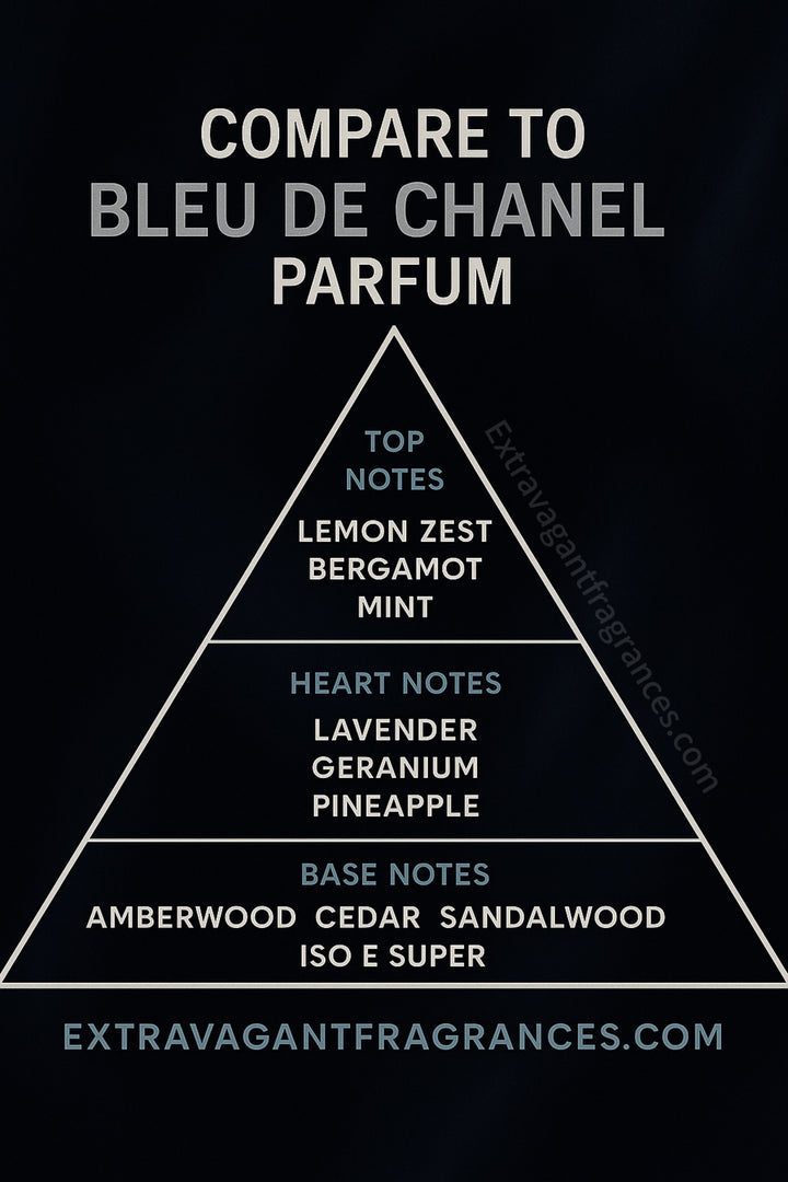Compare to Bleu de Chanel Parfum (M) The fragrance body oil offered by Extravagant Fragrances is inspired by the scent profile of the designer fragrance referenced. We are...