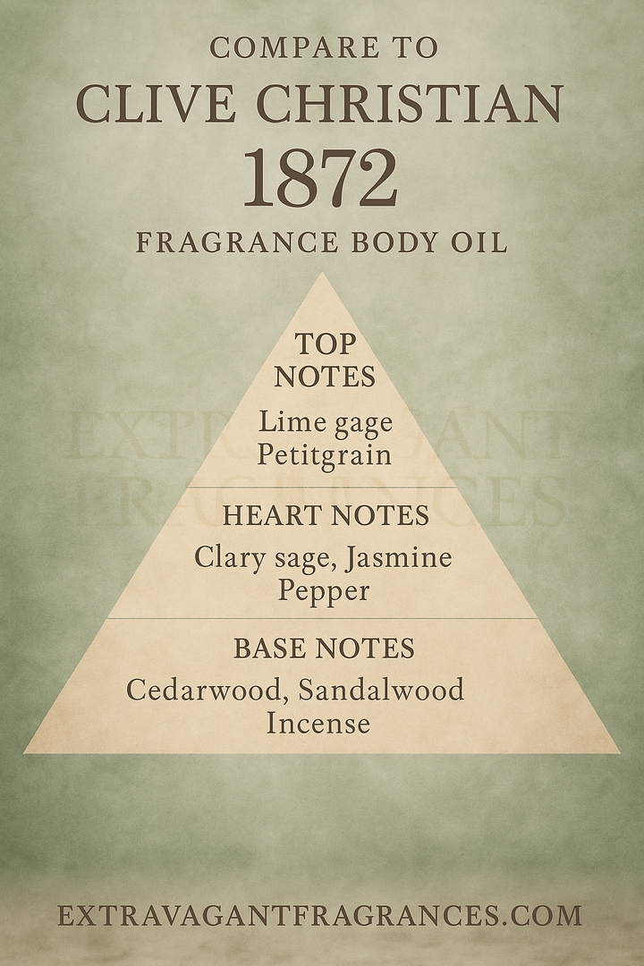 Compare to: Clive Christian 1872 (M) The fragrance body oil offered by Extravagant Fragrances is inspired by the scent profile of the designer fragrance referenced. We are not...