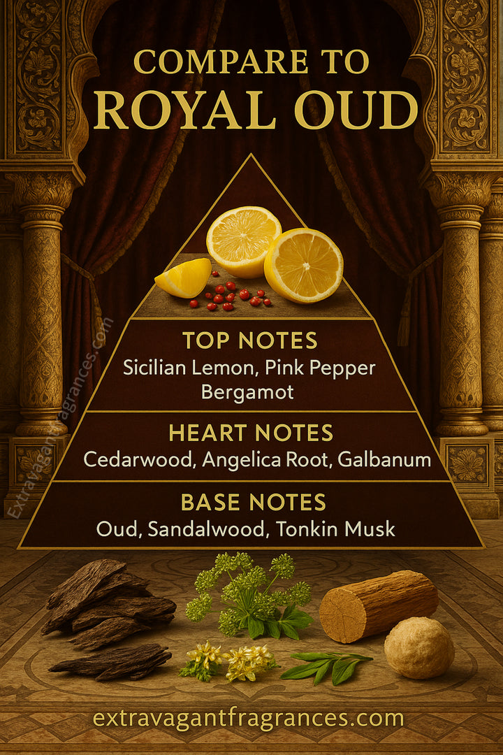 Compare to: Creed Royal Oud (M) The fragrance body oil offered by Extravagant Fragrances is inspired by the scent profile of the designer fragrance referenced. We are not affiliated...