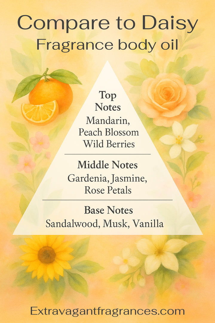 Compare to: Daisy - Marc Jacob’s (W) The fragrance body oil offered by Extravagant Fragrances is inspired by the scent profile of the designer fragrance referenced. We are not...
