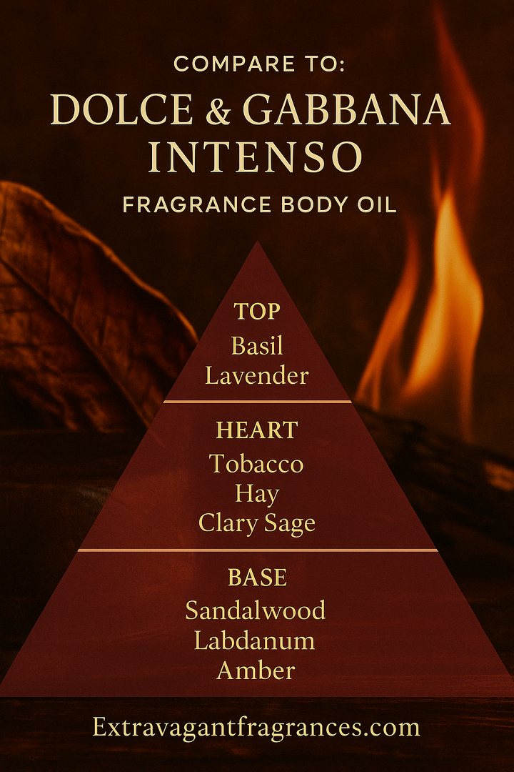 Compare to: Dolce & Gabbana Intenso (M) The fragrance body oil offered by Extravagant Fragrances is inspired by the scent profile of the designer fragrance referenced. We are not...