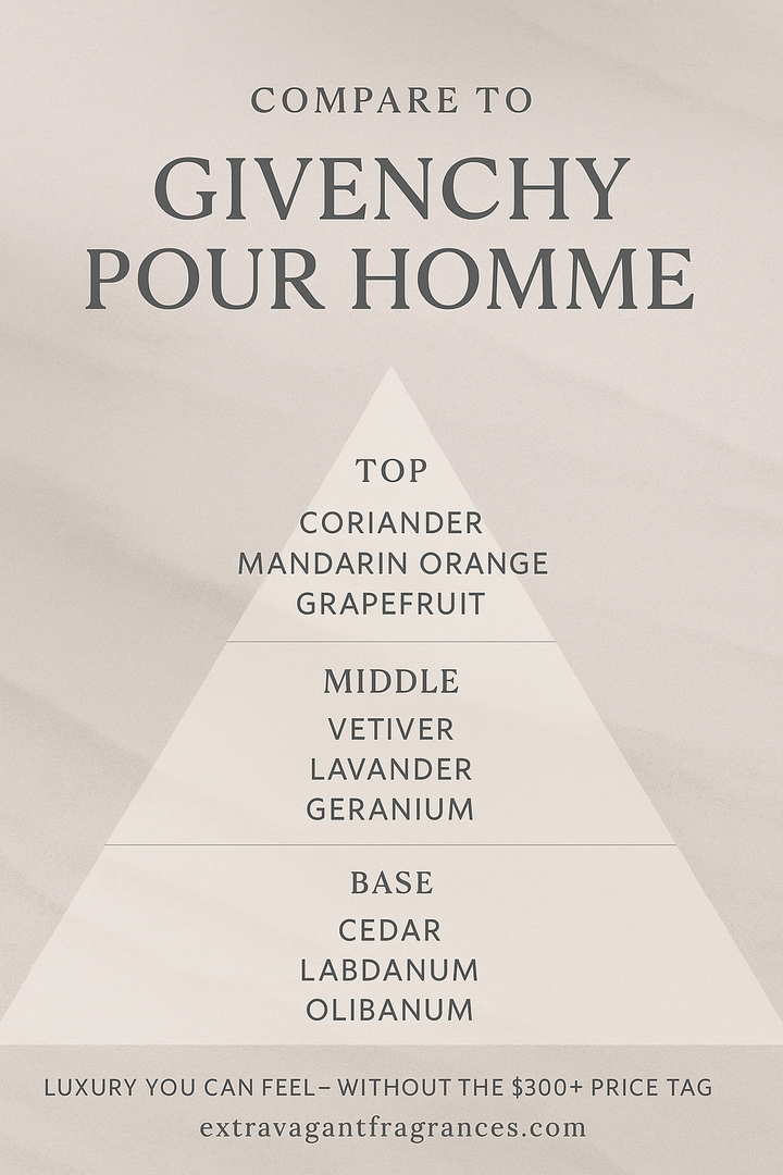 Compare to: Givenchy Pour Homme (M) The fragrance body oil offered by Extravagant Fragrances is inspired by the scent profile of the designer fragrance referenced. We are not affiliated...