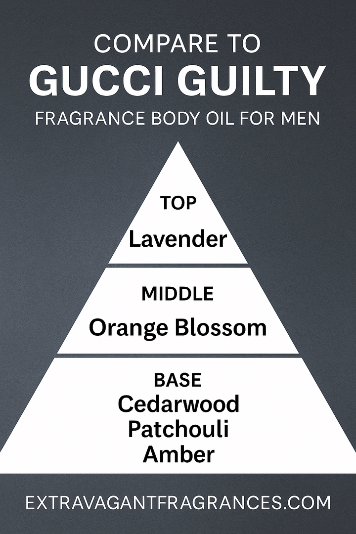Compare to: Gucci Guilty (M) The fragrance body oil offered by Extravagant Fragrances is inspired by the scent profile of the designer fragrance referenced. We are not affiliated with...