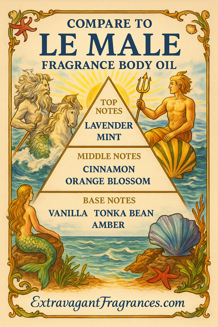 The fragrance body oil offered by Extravagant Fragrances is inspired by the scent profile of the designer fragrance referenced. We are not affiliated with the designer brand, and our product is not the original fragrance. Any mention of trademarked names is strictly for comparison and descriptive purposes. All trademarks are property of their respective owners.
