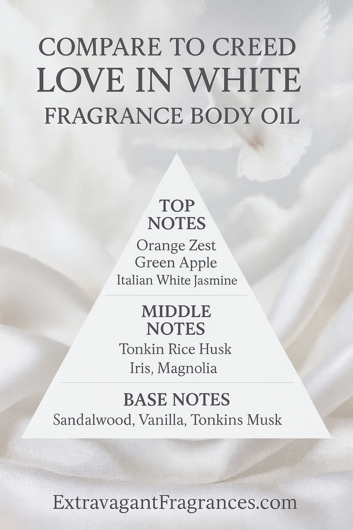 Compare to: Creed love in white (W) The fragrance body oil offered by Extravagant Fragrances is inspired by the scent profile of the designer fragrance referenced. We are not...
