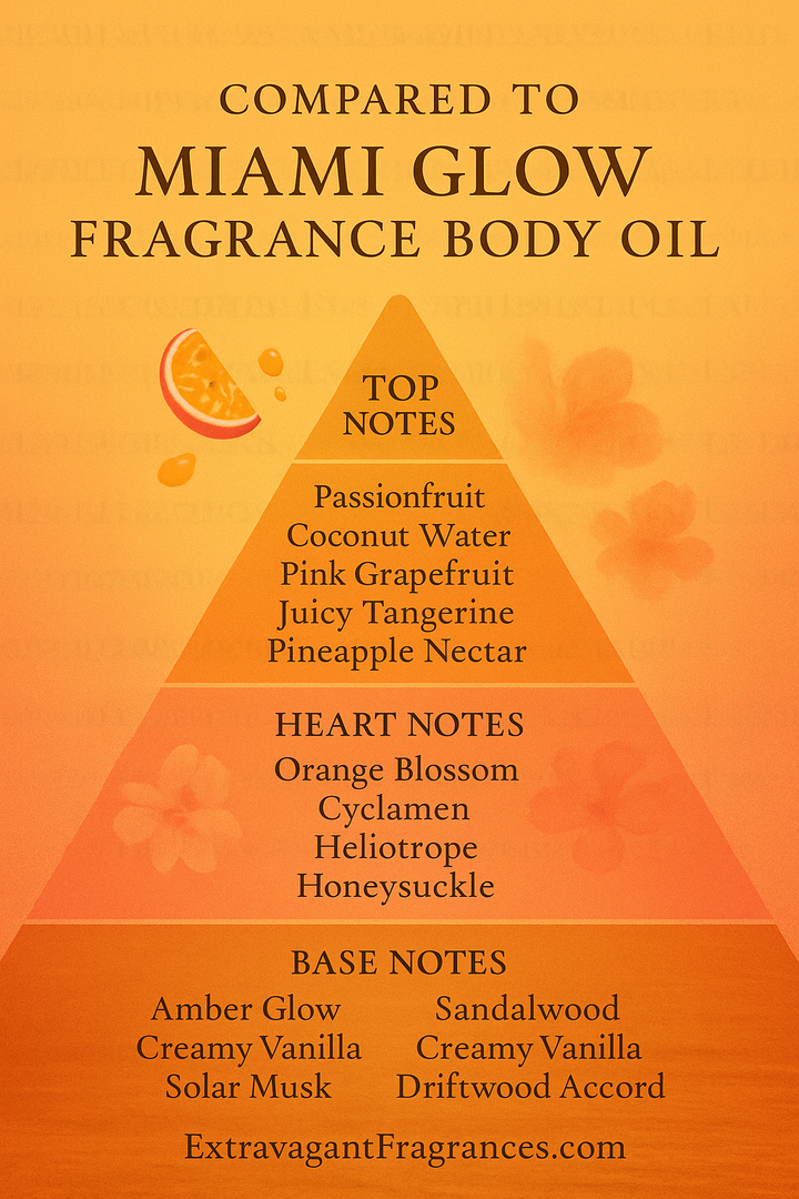 Compare to: Miami Glow - JLo (W) The fragrance body oil offered by Extravagant Fragrances is inspired by the scent profile of the designer fragrance referenced. We are not...