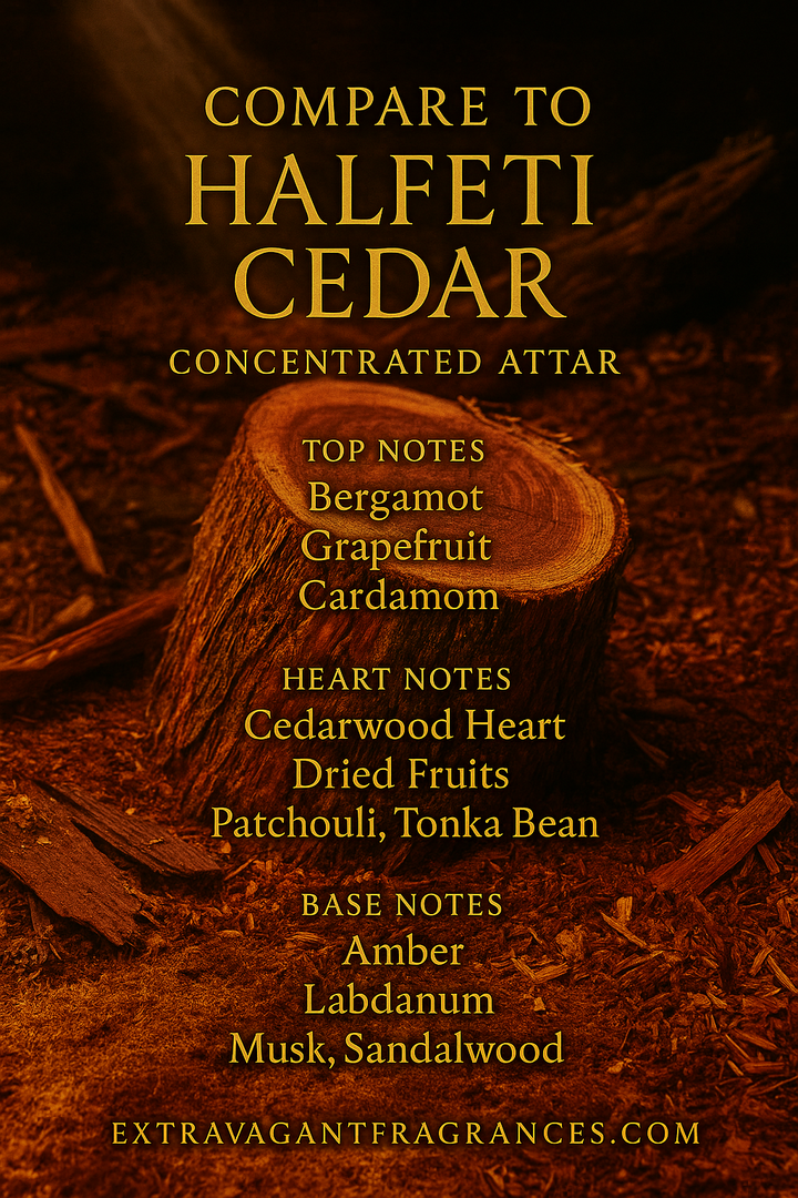 Compare to: Halfeti Cedar - Penhaligon (U) 12ml Dubai Import The fragrance body oil offered by Extravagant Fragrances is inspired by the scent profile of the designer fragrance referenced....