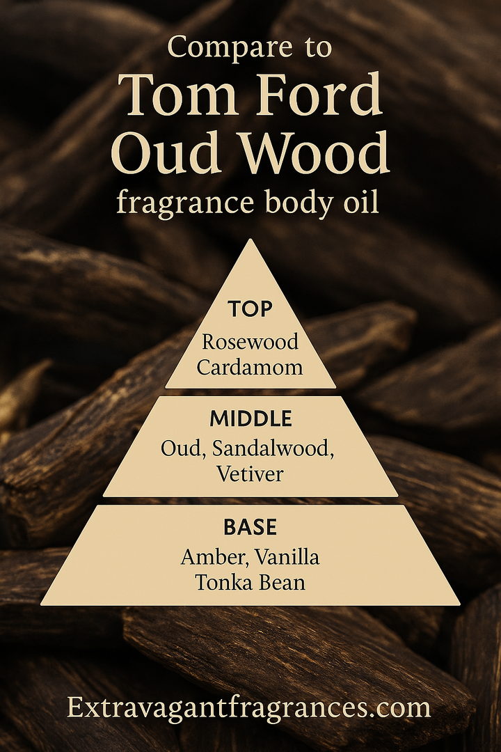 Compare to: Oud Wood - Tom Ford (M) The fragrance body oil offered by Extravagant Fragrances is inspired by the scent profile of the designer fragrance referenced. We are...