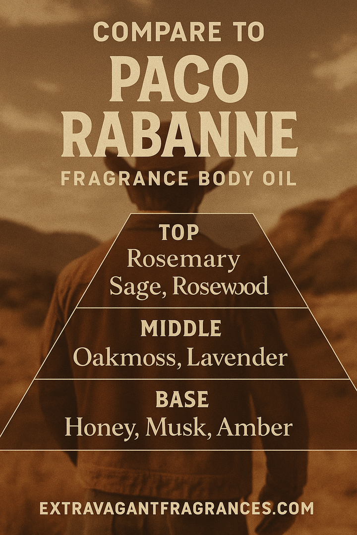 Compare to: Paco Rabbane (M) The fragrance body oil offered by Extravagant Fragrances is inspired by the scent profile of the designer fragrance referenced. We are not affiliated with...