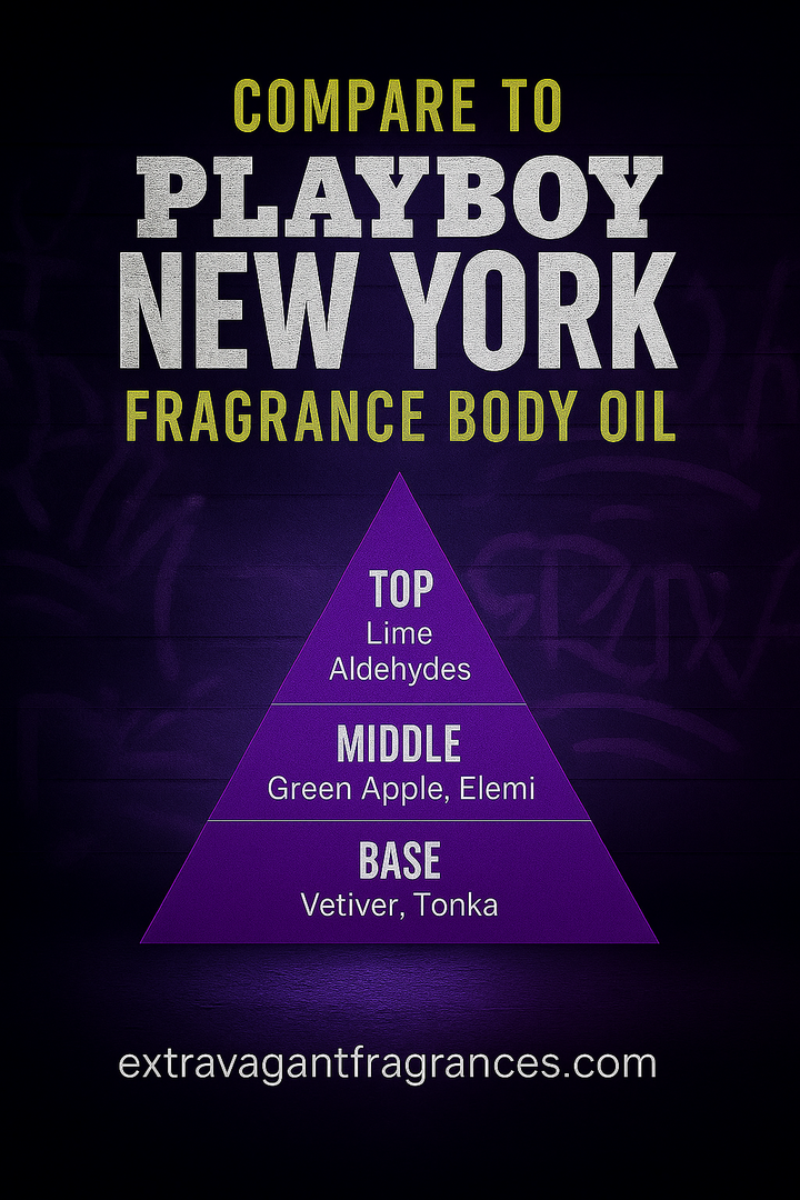 Compare to: Playboy New York(M) The fragrance body oil offered by Extravagant Fragrances is inspired by the scent profile of the designer fragrance referenced. We are not affiliated with...