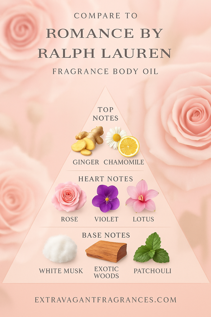 Compare to: Romance - Ralph Lauren(W) The fragrance body oil offered by Extravagant Fragrances is inspired by the scent profile of the designer fragrance referenced. We are not affiliated...