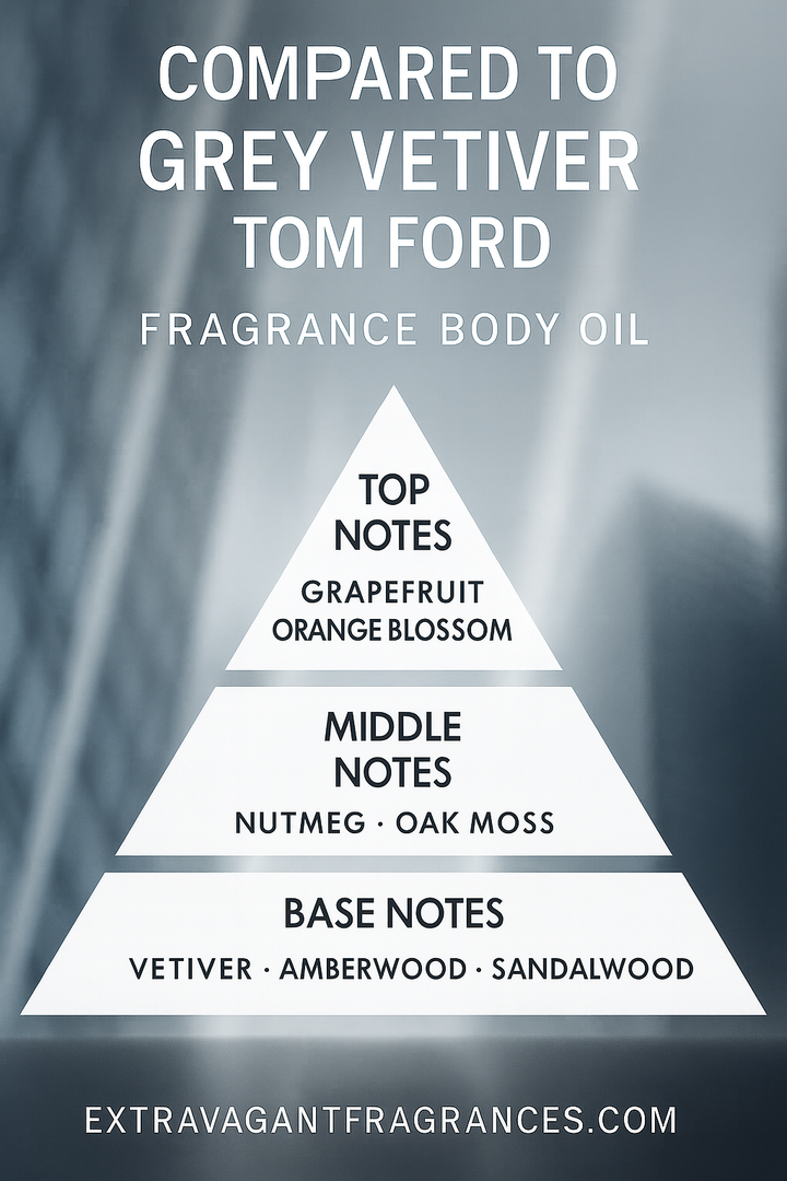 Compare to: Grey Vetiver - Tom Ford (M) The fragrance body oil offered by Extravagant Fragrances is inspired by the scent profile of the designer fragrance referenced. We are...