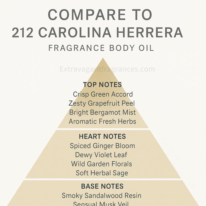 Compare to 212 Carolina Herrera (M) The fragrance body oil offered by Extravagant Fragrances is inspired by the scent profile of the designer fragrance referenced. We are not affiliated...