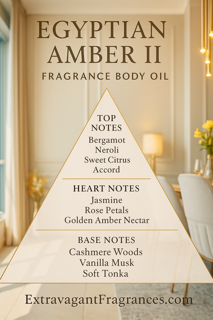 Egyptian Amber II (U) The fragrance body oil offered by Extravagant Fragrances is inspired by the scent profile of the designer fragrance referenced. We are not affiliated with the...