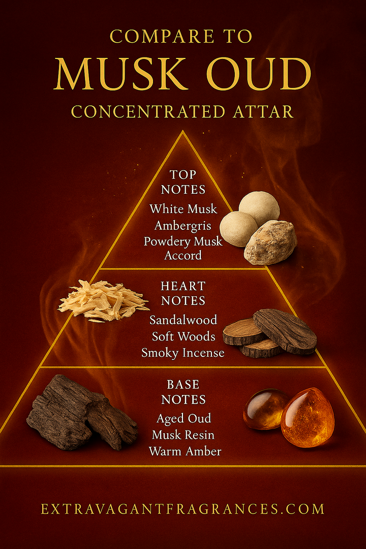 Compare to: Musk Oud - Concentrated Attar (U) 12ml Dubai Import The fragrance body oil offered by Extravagant Fragrances is inspired by the scent profile of the designer...