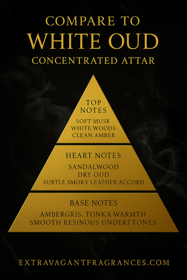 Compare to: White Oud - Concentrated Attar (U) Dubai Import The fragrance body oil offered by Extravagant Fragrances is inspired by the scent profile of the designer fragrance referenced....